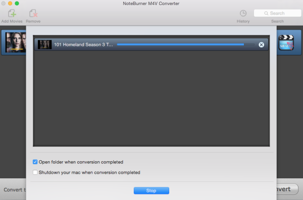Step 4. Click "Convert" button to start to convert M4V videos with Noteburner M4V iTunes Video Converter for Mac